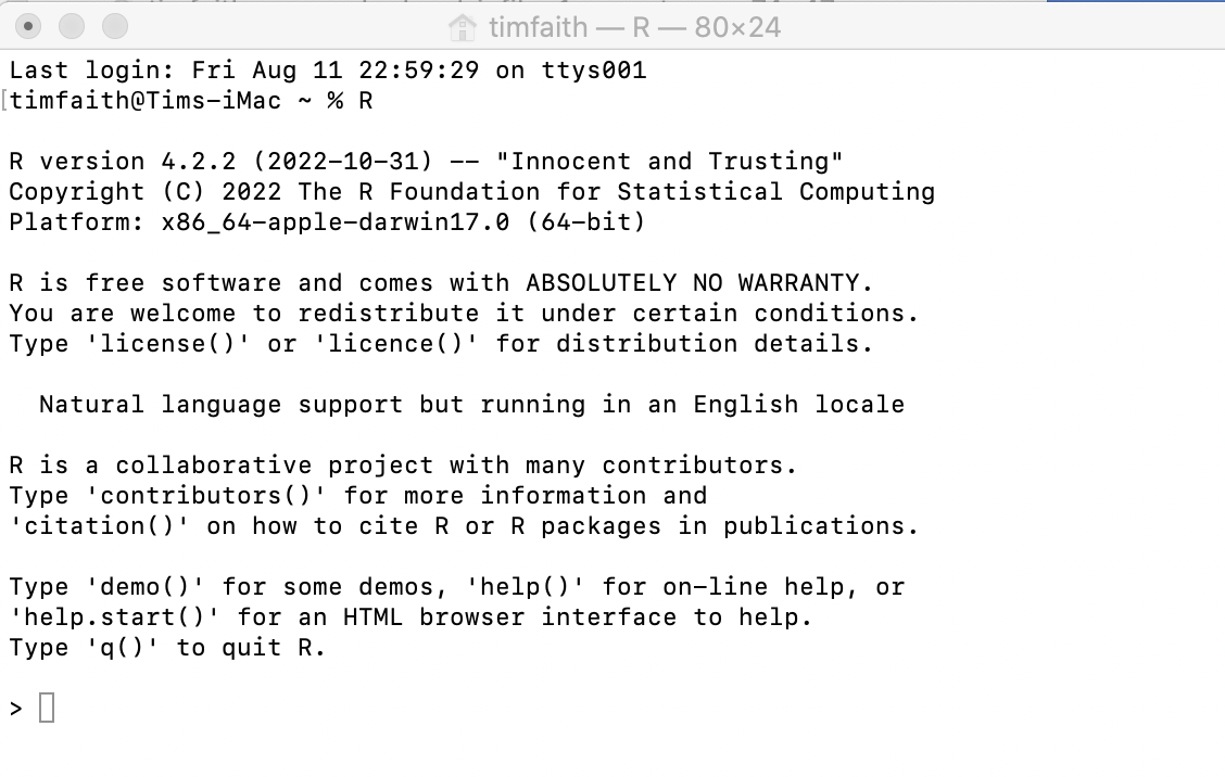 You also may or may not be comfortable using the Terminal to interact with your operating system, unless you are a fossil like me and worked with MS DOS 3.1 back when personal computing was still a new idea. If you prefer a graphical user interface, you may need some additional tools that will help you to access and/or analyze your data. For example, HeidiSQL gives you a graphical view of your MySQL databases. R can be installed with a partly graphical user interface (though you will still need to create code for the actual data analysis).