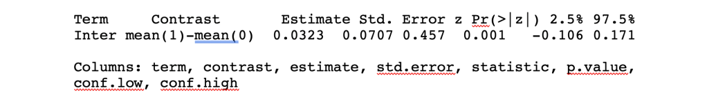 comp0 <- comparisons(fit0, variables=”CodedGrade”, vcov=TRUE, newdata=subset(mdata0,CodedGrade==1), wts=”weights”)